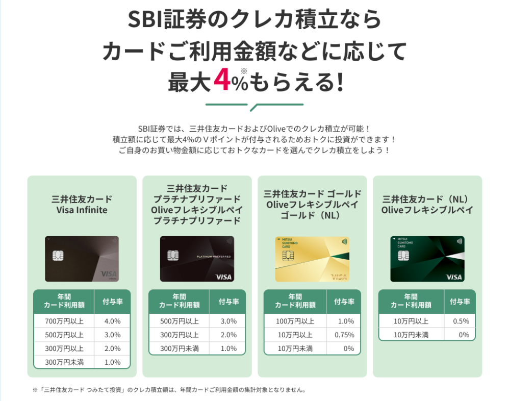 SBI証券は三井住友カードでの積立でVポイント最大4%